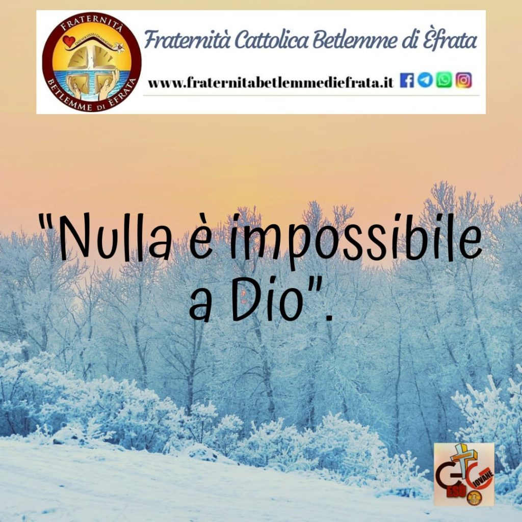 Allora Maria disse all’angelo: «Come avverrà questo, poiché non conosco uomo?». Le rispose l’angelo: «Lo Spirito Santo scenderà su di te e la potenza dell’Altissimo ti coprirà con la sua ombra. Perciò colui che nascerà sarà santo e sarà chiamato Figlio di Dio. Ed ecco, Elisabetta, tua parente, nella sua vecchiaia ha concepito anch’essa un figlio e questo è il sesto mese per lei, che era detta sterile: nulla è impossibile a Dio».